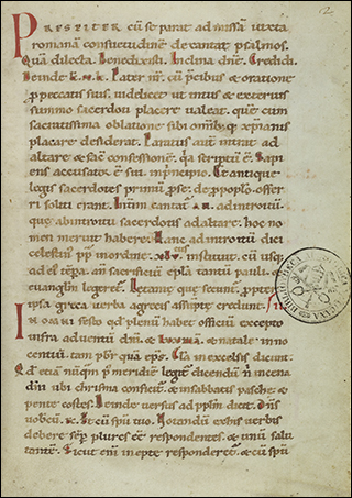Codices Palatini Entry, Biblia: Vetus Testamentum: Expositio in Cantica Canticorum; Deutschland (?); 11.–12. Jh., , See Bannister, H. M. Monumenti vaticani di paleografia musicale latina ID# 47[, Folio: 2r, Century: 11/12, Source: tedesco, Notation: Neumi accenti]
