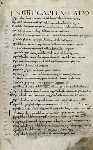 See JONAS, Codices Palatini Entry, ff.1r-2r is table of contents