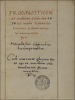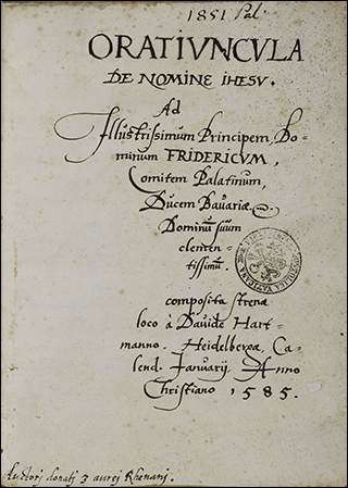 Codices Palatini Entry, Cruciger; Caspar; Schriften zu theologischen Kontroversen und zum Wittenberger Universitätsleben; Wittenberg; 1570-1571