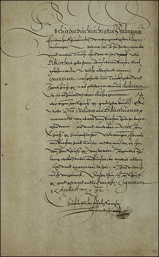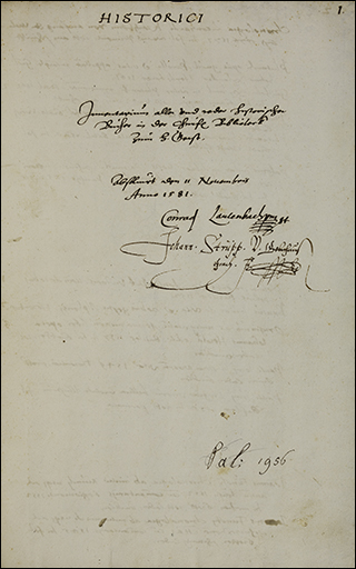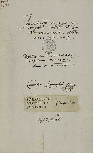 Codices Palatini Entry, Katalog der Palatina (1581). Geschichte; 1581
