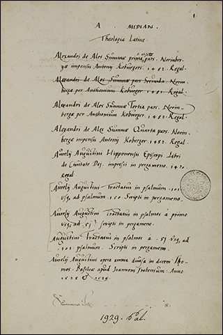 Codices Palatini Entry, Katalog der Bibliothek Achill Pirmin Gassers (Sachgruppen und Autoren)