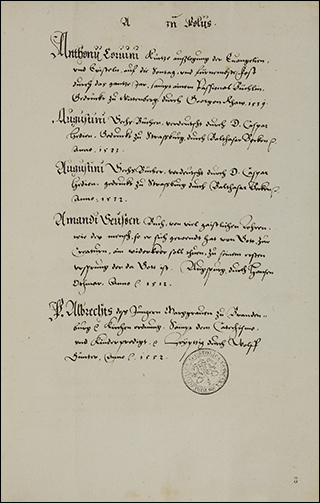 Codices Palatini Entry, Katalog der Bibliothek Achill Pirmin Gassers: Sachgruppen und Autoren