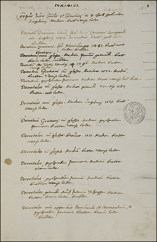 Codices Palatini Entry from Wittenberg. First 13 folios are table of contents/index, then foliation restarts at f.1r