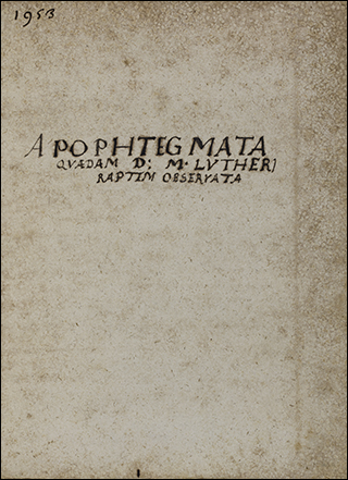 Codices Palatini Entry, Luther; Martin; Apophtegmata etc. (Johannes Aurifaber?)