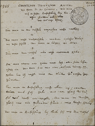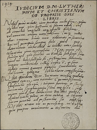 Codices Palatini Entry, Luther; Martin; Opera diversa (Schülerabschrift?)