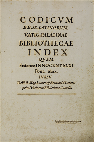 Codices Palatini Entry, Inventarium manuscriptorum Latinorum Bibliothecae Palatinae; 17. Jh.