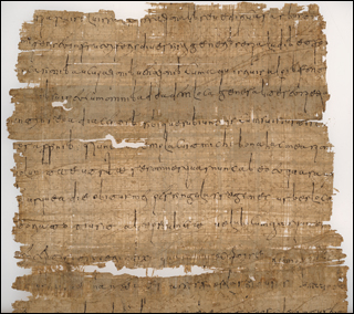 The entire Pap.vat.lat collection of 27 items, 4 digitized, consists of Byzantine legal documents from the archives of Ravenna. These were formerly displayed on the walls of the Sala de Papiri in the Vatican museum, a room special built for the purpose between 1771 and 1775. The image to the right is from the early part of Pap.vat.lat.6, part of the a document recording a donation to the Church of Ravenna by one Sisevera, a Goth. A transcription of the text, written in New Roman Cursive, can be found in ChLA XXi, #717
