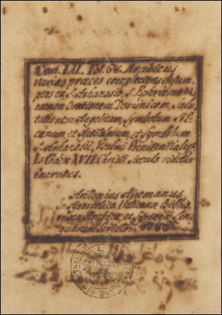 Same text found in Vat.ar.104, and Vat.ar.116. This copy is missing pages in the middle. Dated 723 AH