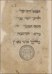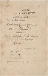 In Latin on f.1r "De Matrimonio ineundo cum uxore fratris demortci Tractatus Kabaliscicus